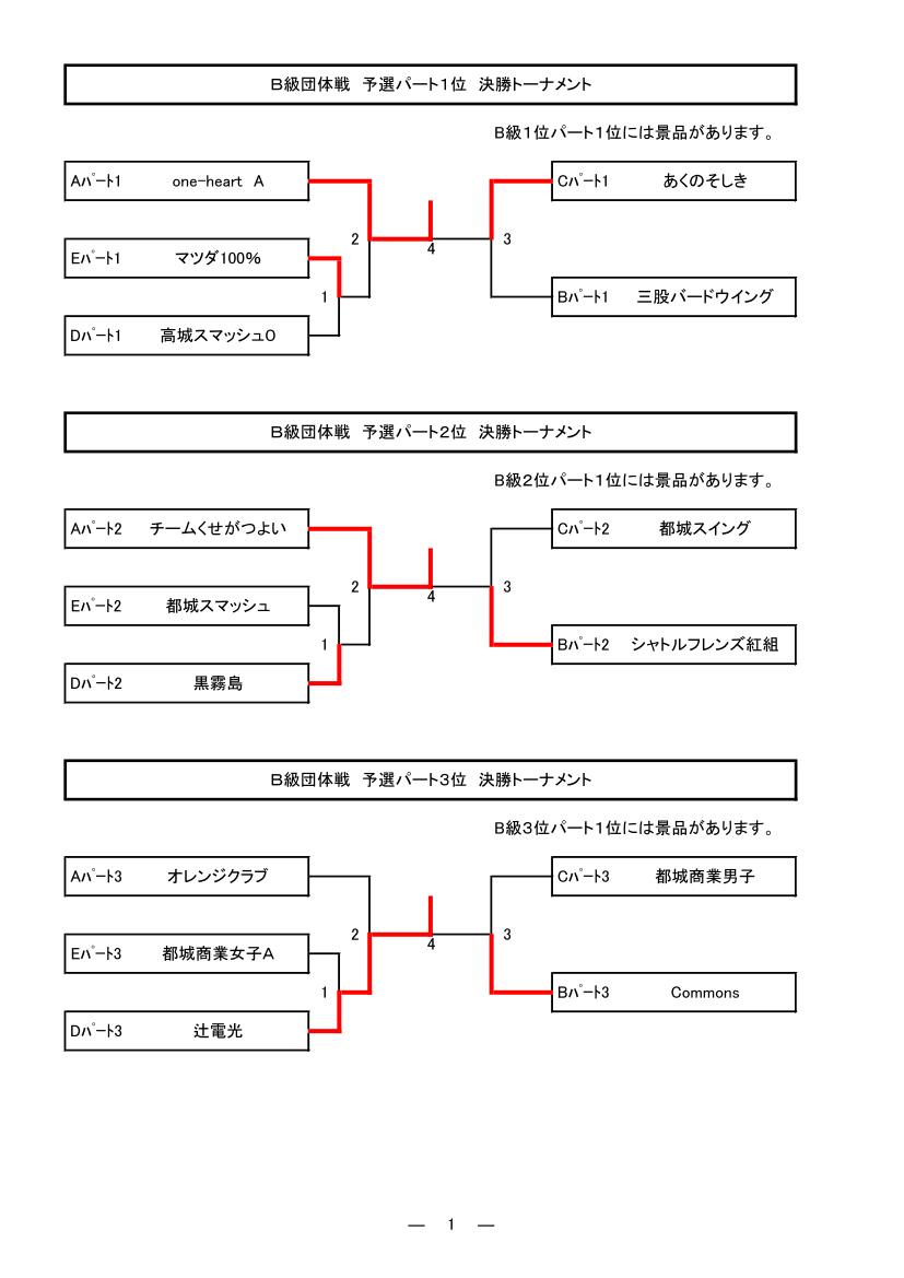 | (B-E)パート | 都城スマ | マツダ | 都城商業 | 勝 敗 | 順位 |