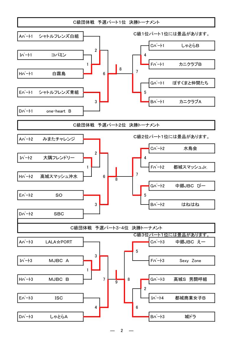 | 2 | 中郷JBC びー | 2 | ( ) | 1 | 高城S 男闘呼組 |